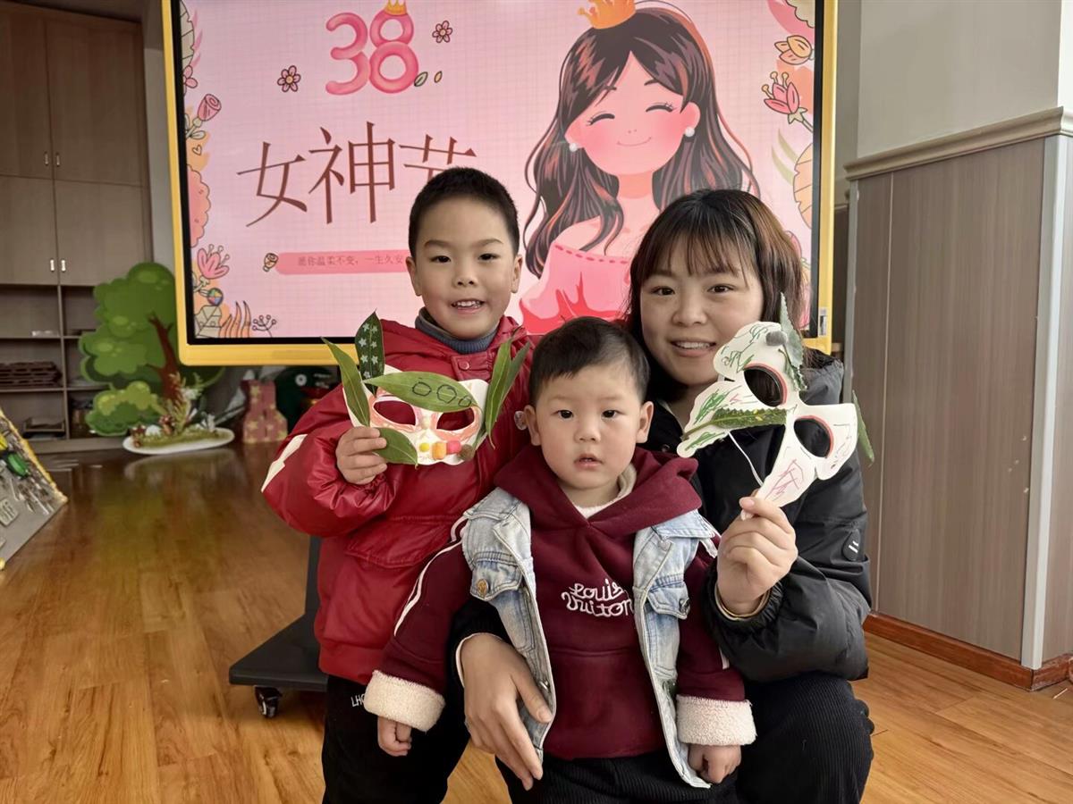 孩子们化身自然艺术家,将采集的树叶、花朵等精心拼贴在空白面具上进行装饰,为班级邀请的女性长辈代表送上亲手制作的节日礼物,希望她们戴上这美丽又独一无二的面具能感受到宝贝们浓浓的爱。